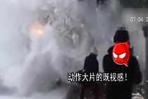 铁轨满是积雪 列车进站霸道“除雪”