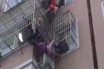 老太坠楼被卡防盗窗 邻居撕被单救一命
