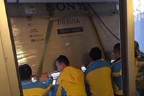 “土豪”购100寸电视 动用钢索吊篮送上门