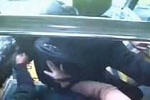 小偷跳车逃跑 乘客将其扑倒在绿化带