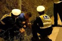 酒驾司机被查路边狂吃草