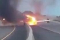 美一飞机迫降公路瞬间起火