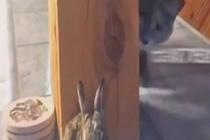 猫咪想方设法努力逗兔子