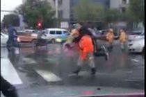 环卫工蹚水背学生过马路 “我也有孩子”