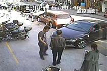 监拍司机停车一脚油门 撞碎银行大门