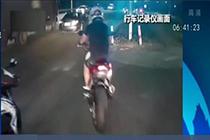 实拍12辆摩托车深夜飙车 一路轰鸣