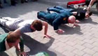 【解说】记者了解到,新疆喀什地区麦盖提县当地群众也参与到反恐行动中,7名维吾尔族群众为县公安局捐赠7个盾牌助民警反恐,还赠送了一批办公用品。
