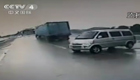 监拍面包车打滑掉头撞上身后大客车