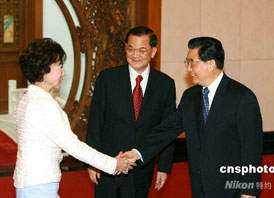 2005年4月29日,胡锦涛与连战在北京举行会谈,共同发布两岸和平发展共同愿景。 ·促进尽速恢复谈判,共谋两岸人民福祉 ·促进终止敌对状态,达成和平协议 ·促进两岸经济全面交流,建立合作机制 ·促进协商台民众关心的参与国际活动问题 ·建立党对党定期沟通平台 |