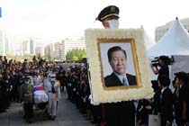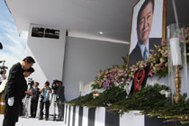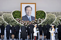 图:朝鲜吊唁团在金大中灵堂进行吊唁
