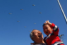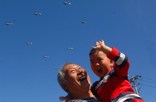 祖孙俩目睹阅兵盛况