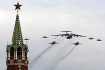 俄罗斯举行空中阅兵预演 大批战机飞过红场上空