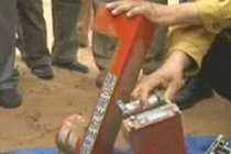 图:利比亚坠机现场 调查人员正在进行调查
