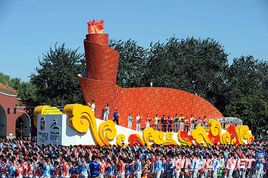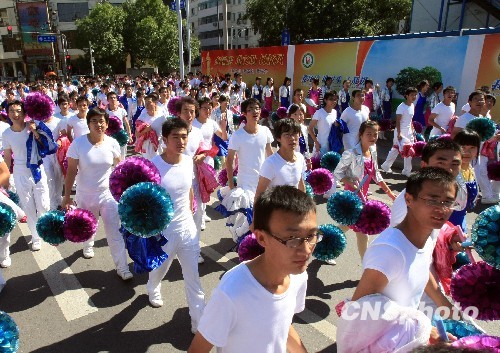 图:黑龙江大学生挥舞国旗为祖国欢呼