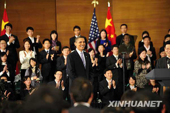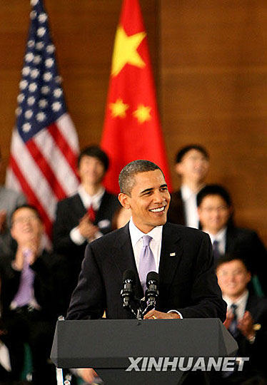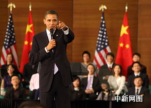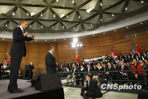 组图:奥巴马在上海科技馆与青年学生对话(2)