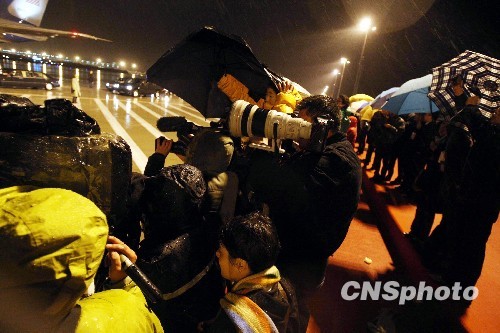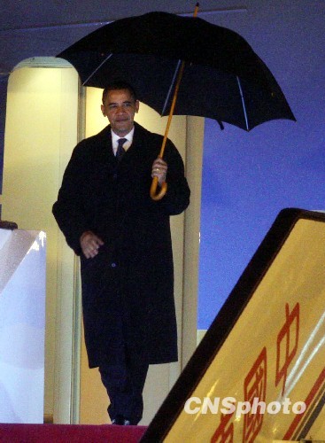 图:美国总统奥巴马抵达上海 记者雨中等候