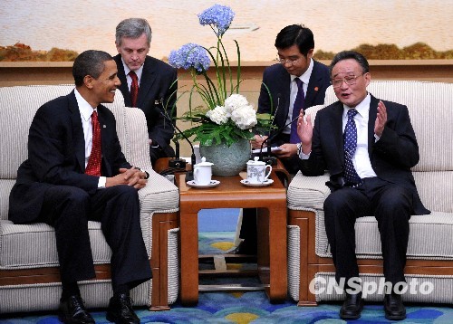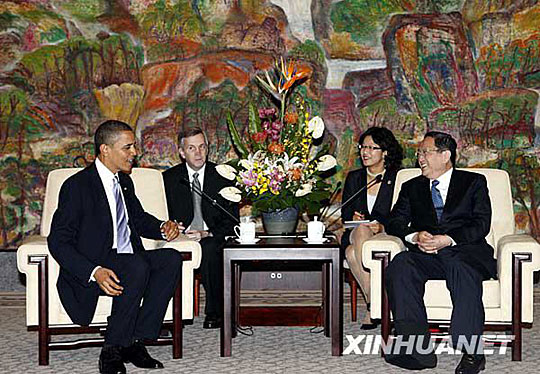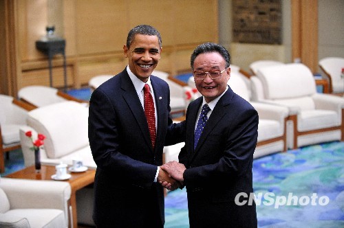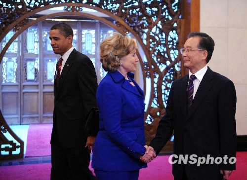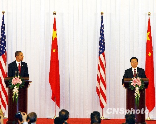图:胡锦涛举行仪式欢迎美国总统奥巴马访华