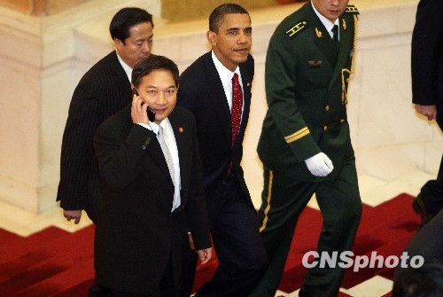 图:奥巴马轻松出席胡锦涛主席欢迎宴会