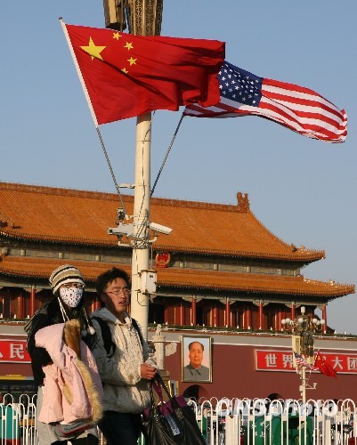 图:中美国旗飘扬欢迎奥巴马访华(2)