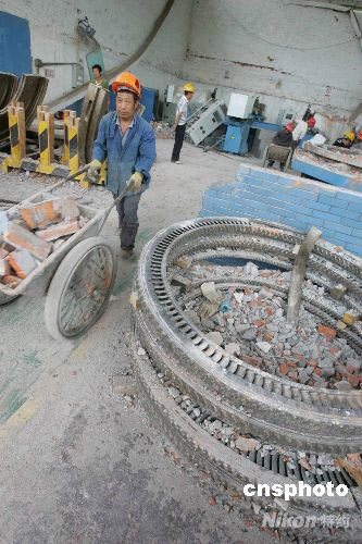 图:东方汽轮机厂清理灾后厂房准备重建(5)