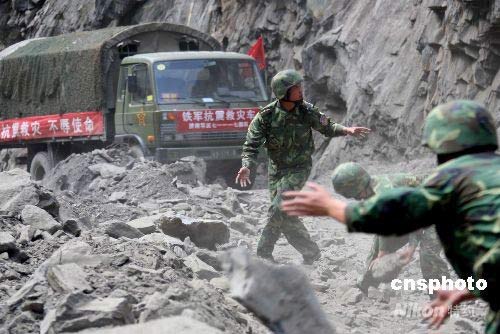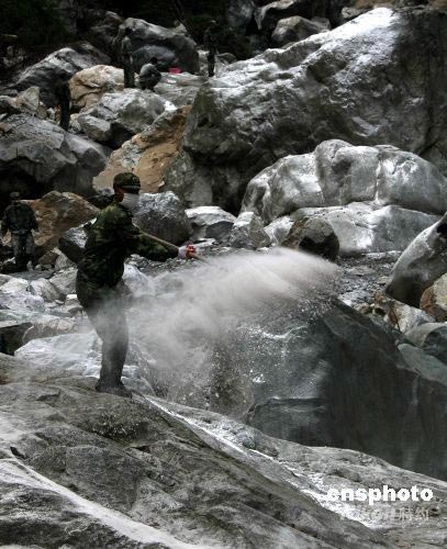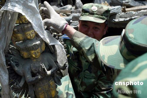 图:解放军在藏寨废墟中抢救珍贵文物