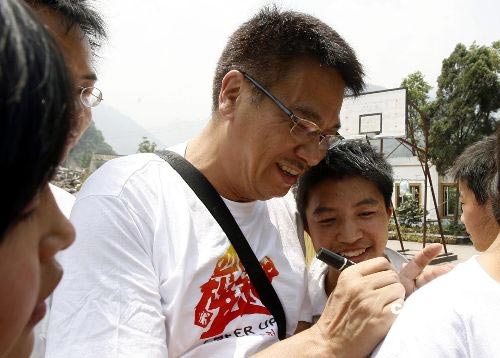图:香港艺员吴孟达到地震灾区四川什邡
