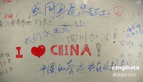 图:观众在汶川抗震救灾纪实图片展留言
