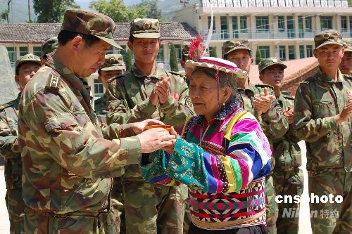 图:四川震区羌族民众夸赞解放军