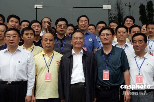 图:温家宝唐家山堰塞湖抢险指挥部看望专家组成员