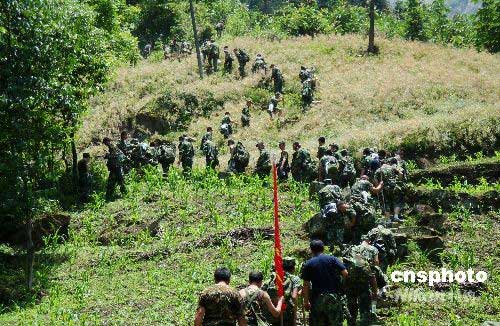图:解放军官兵全力寻找失事直升机