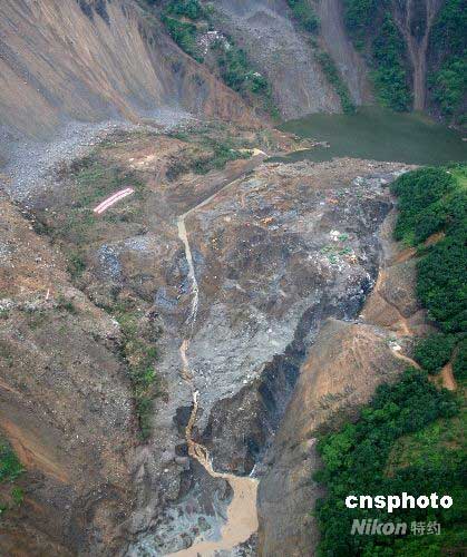 图:唐家山堰塞湖开始泄流