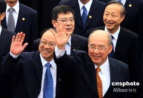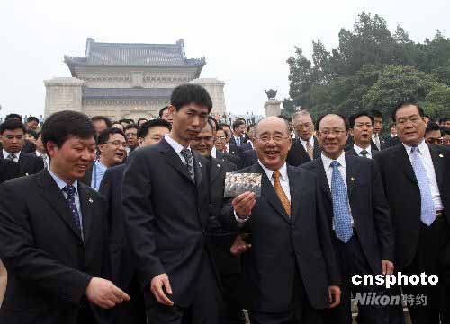 图:吴伯雄南京中山陵向周围民众挥手致意