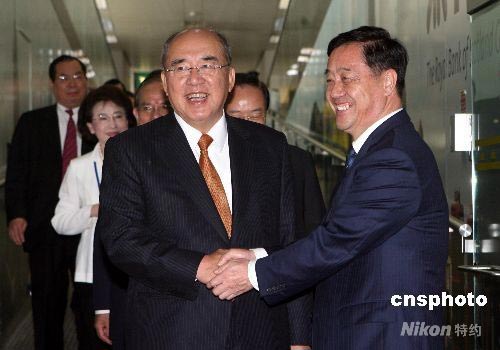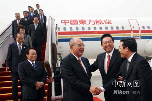图:中国国民党主席吴伯雄一行抵达上海(2)