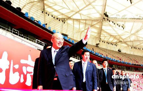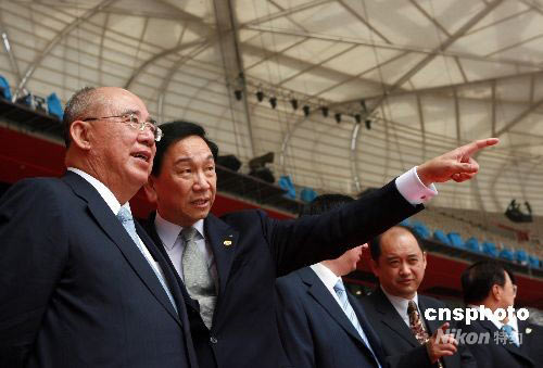 图:中国国民党主席吴伯雄一行参观"鸟巢"(2)