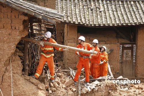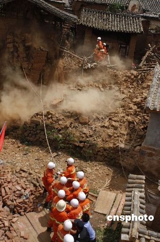 图:云南救灾官兵全力排除危房