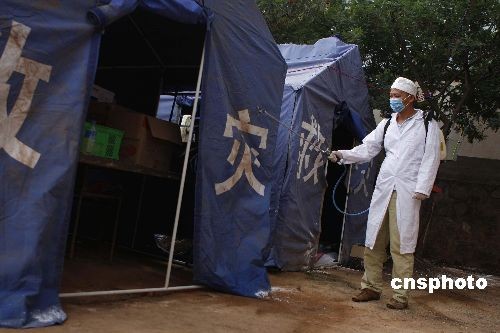 图:云南姚安地震灾区积极开展防疫工作