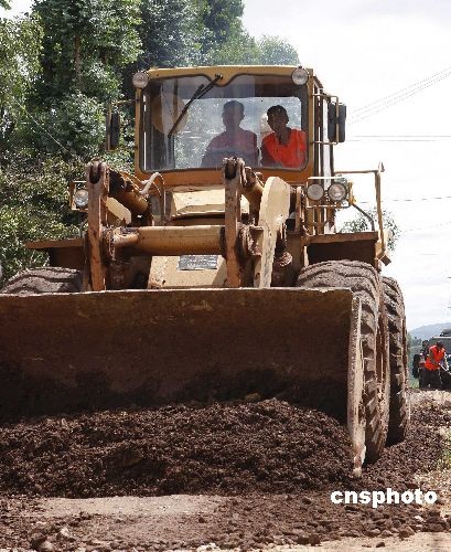 图:云南姚安地震灾区全力修复受损道路