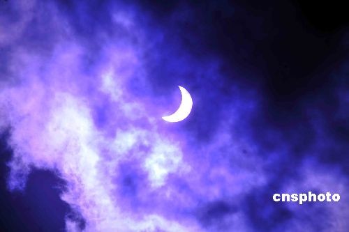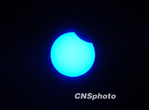 中国各地观测日食奇观:连云港上空出现日偏食景观