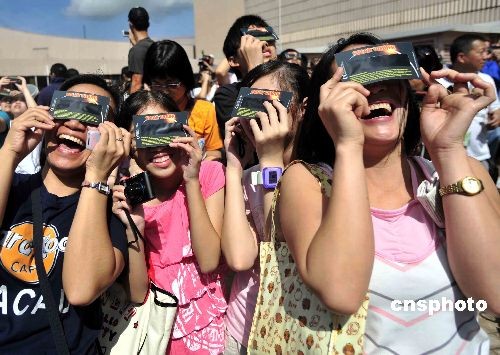 中国各地群众观看日食奇观:外国媒体关注中国民众观测日全食