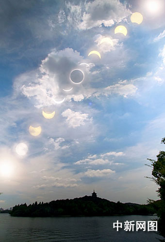 杭州西湖观日全食 忽隐忽现留下妙幻魅影