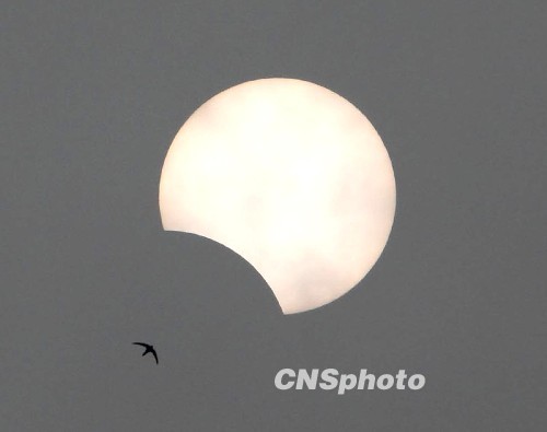 中国各地观测日食奇观:北京上空燕子陪伴日偏食