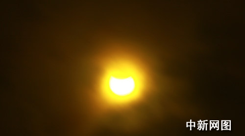 图:“大日食”如约光临重庆 当地市民翘首观看