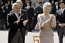 图:日本明仁天皇夫妇在东京庆祝金婚