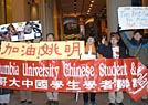 纽约中国球迷在场外拉起横幅迎接队员到来