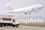 载有春节返乡探亲台商及其眷属"华航"包机飞离浦东机场