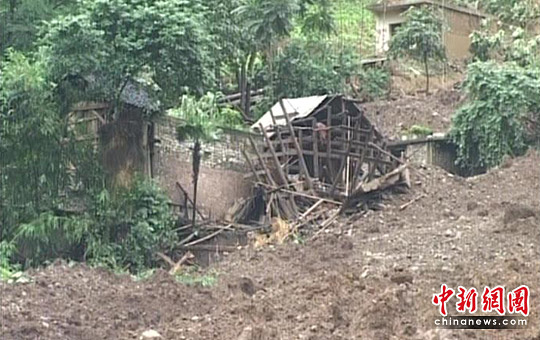 贵州省关岭县岗乌镇大寨组合永窝组结合部发生的山体滑坡现场。