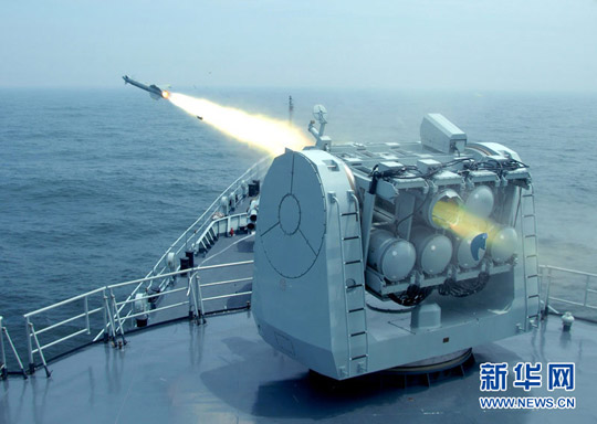图为海上战舰发射舰空导弹拦截来袭导弹。李唐 摄
