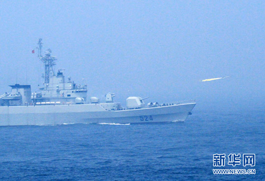 图为导弹护卫舰在演练中发射舰空导弹,对来袭导弹进行拦截。查春明 摄