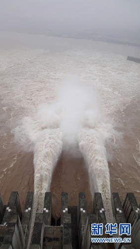 组图:三峡今年首次开闸泄洪 (2)