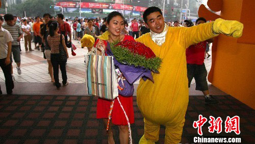组图:男子装扮“维尼熊”王府井浪漫求婚(5)